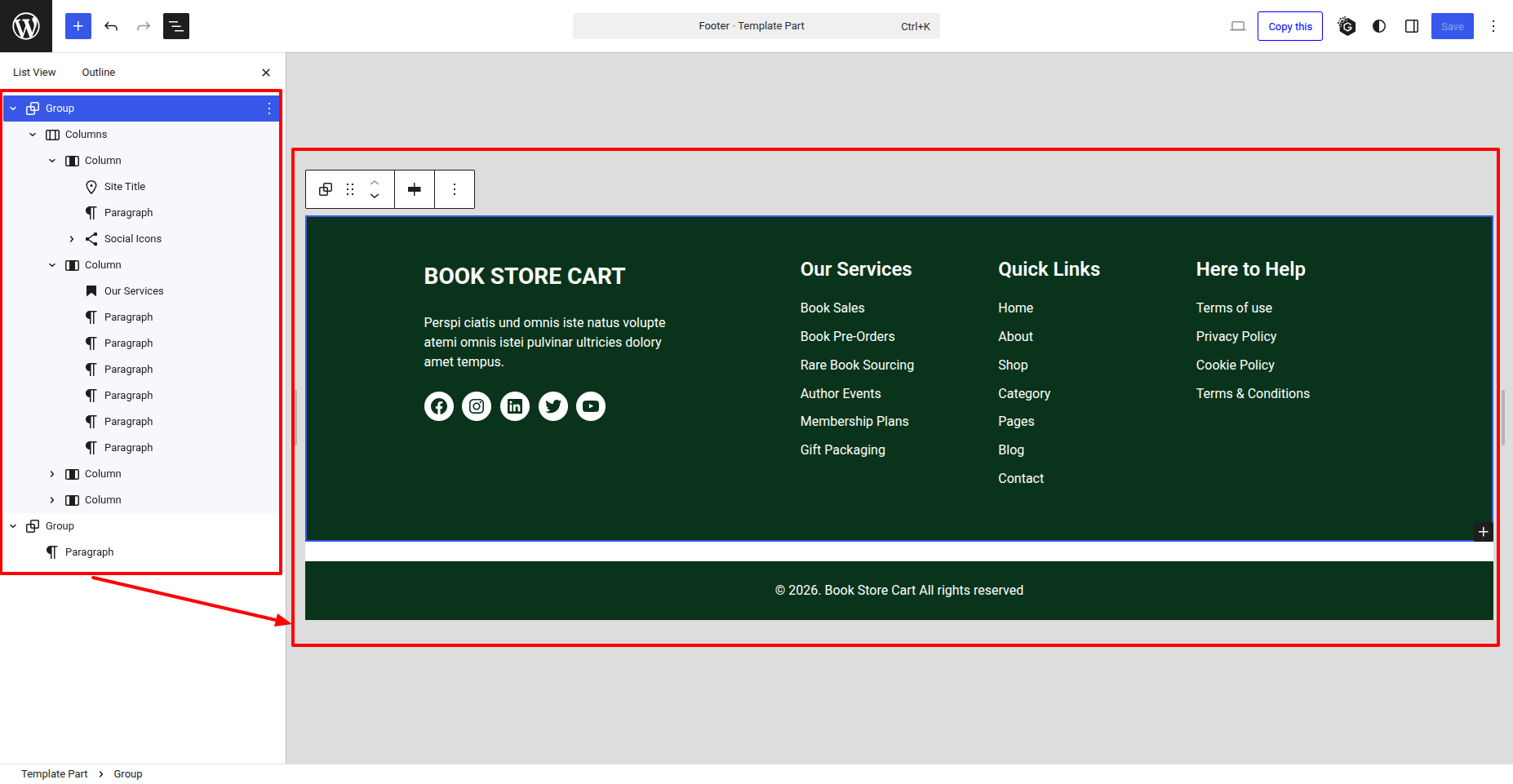 - Go to Your a dashboard on the WordPress platform and Decide into Appearance > Editor > Patterns > Footer > Click on Footer .