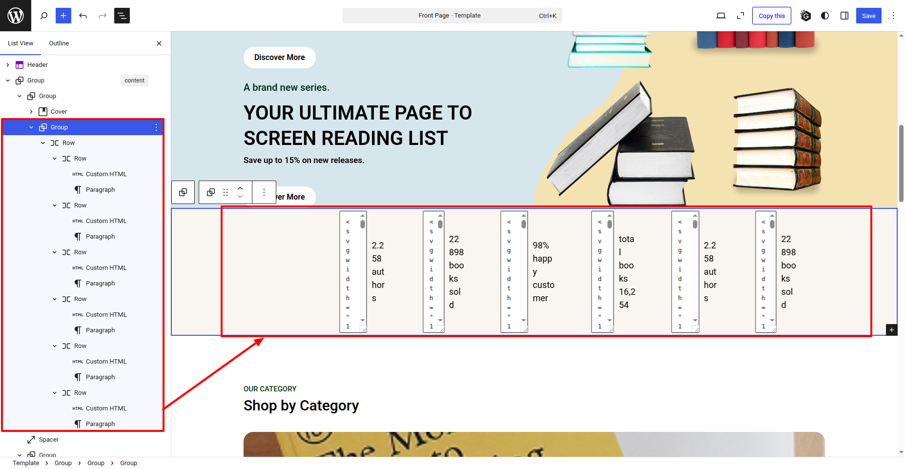 - Editing is permitted. the title & text in the Shop by Category .