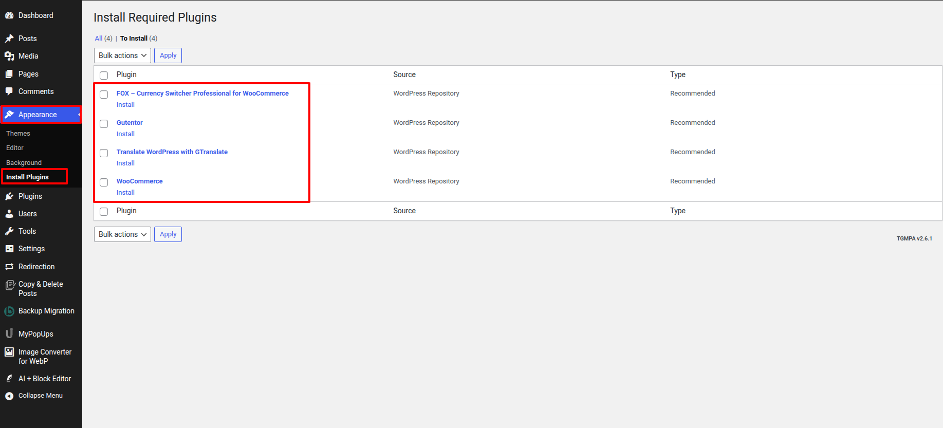 - Go to Your a dashboard on the WordPress platform and Decide into Appearance > Install Plugins > Install Required Plugins .