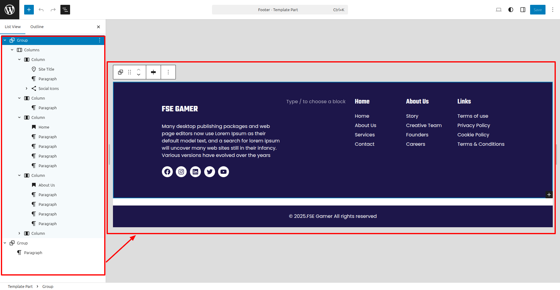 - Go to Your a dashboard on the WordPress platform and Decide into Appearance > Editor > Patterns > Footer > Click on Footer .