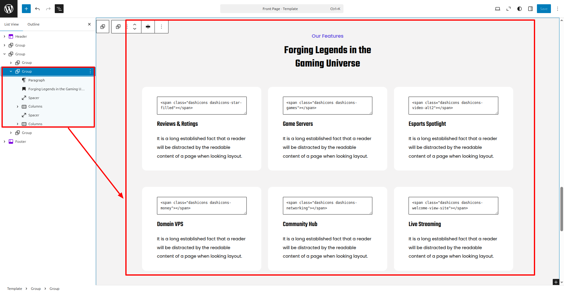 This theme includes a Our Features feature. adhere to the instructions. to set it up: