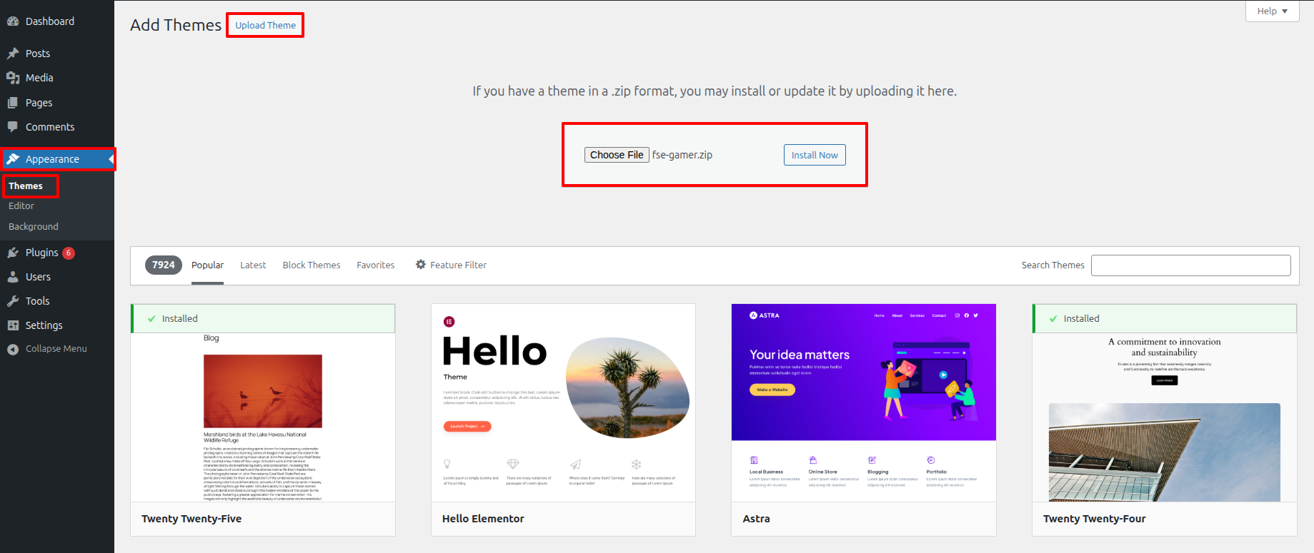 To do this, Decide into Appearance > Themes in the admin panel. You ought to view the main theme. listed as FSE Gamer. Simply click the chosen theme and the "Activate" tab will be applied successfully.