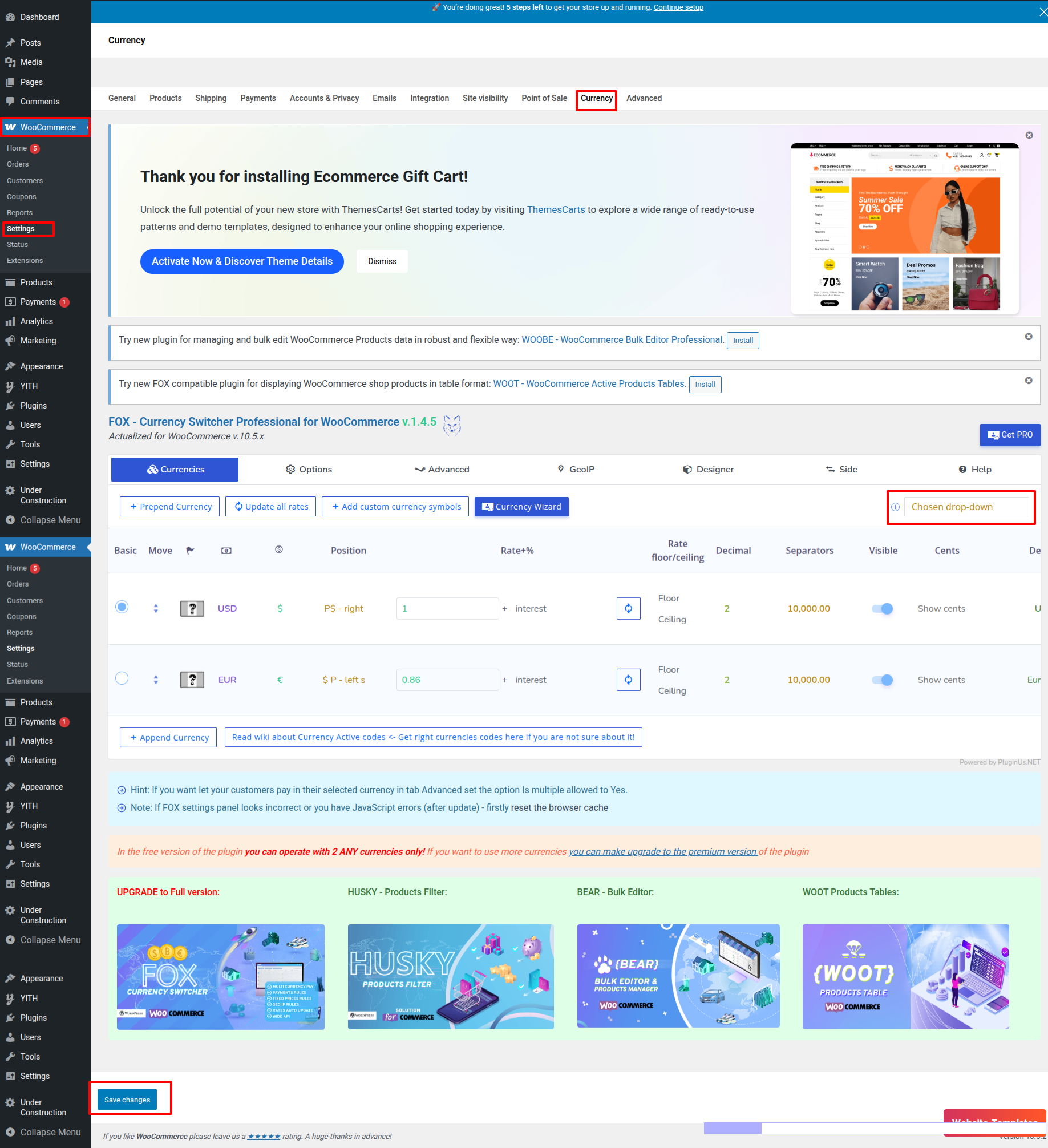 - Go to Your a dashboard on the WordPress platform and Decide into WooCommerce > Settings > Currency > Select Chosen drop-down > Save Changes > [woocs] Copy this shortcodes .