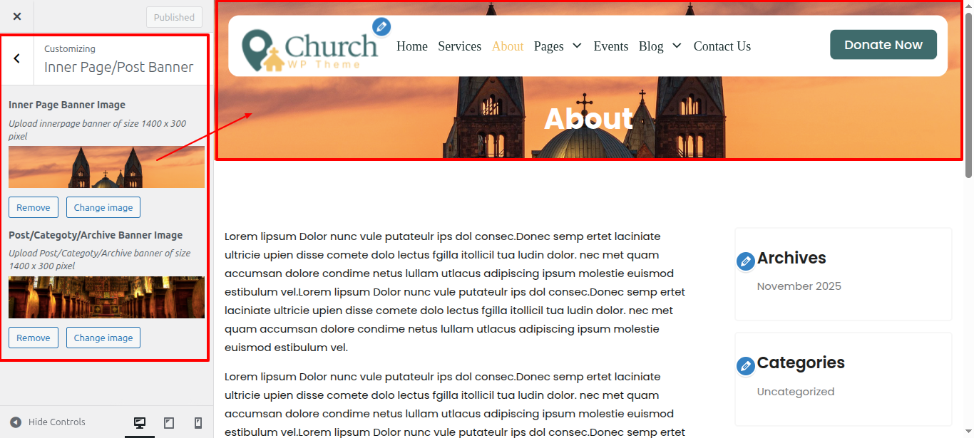 - Choose on Appearance > than Customize >. Lastly, Page/Post Banner in The admin panel on WordPress.