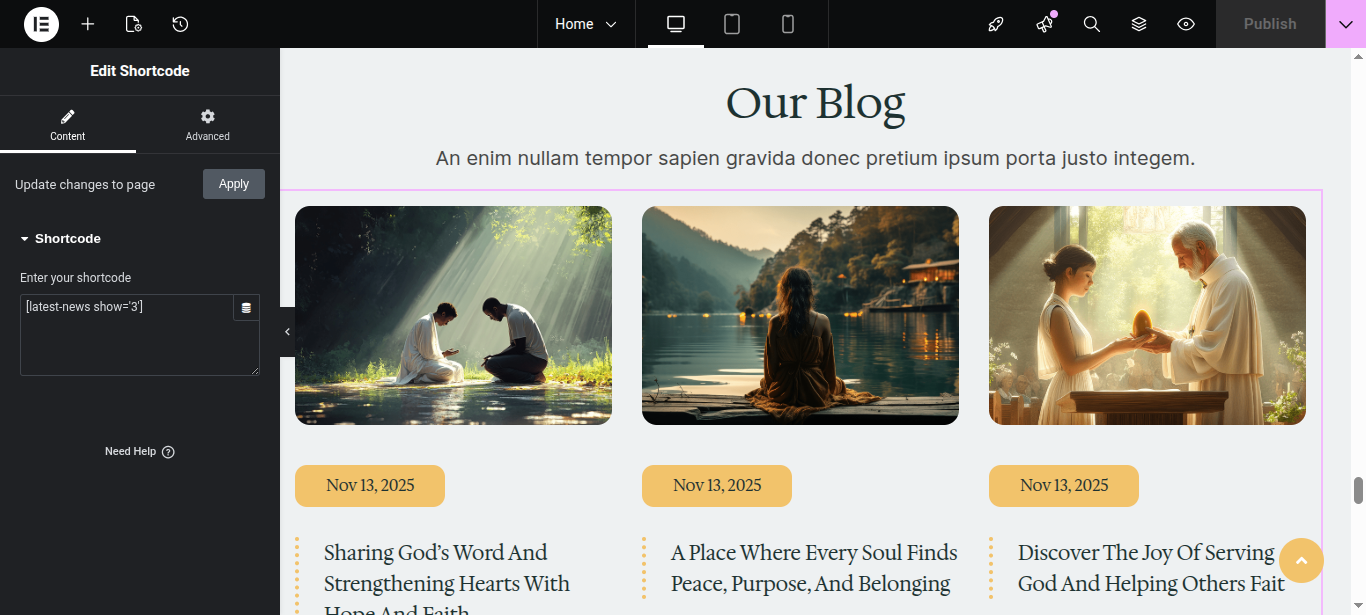 The Elementor plugin is used to create the Mainpage Section. Make sure you have installed the Elementor plugin.