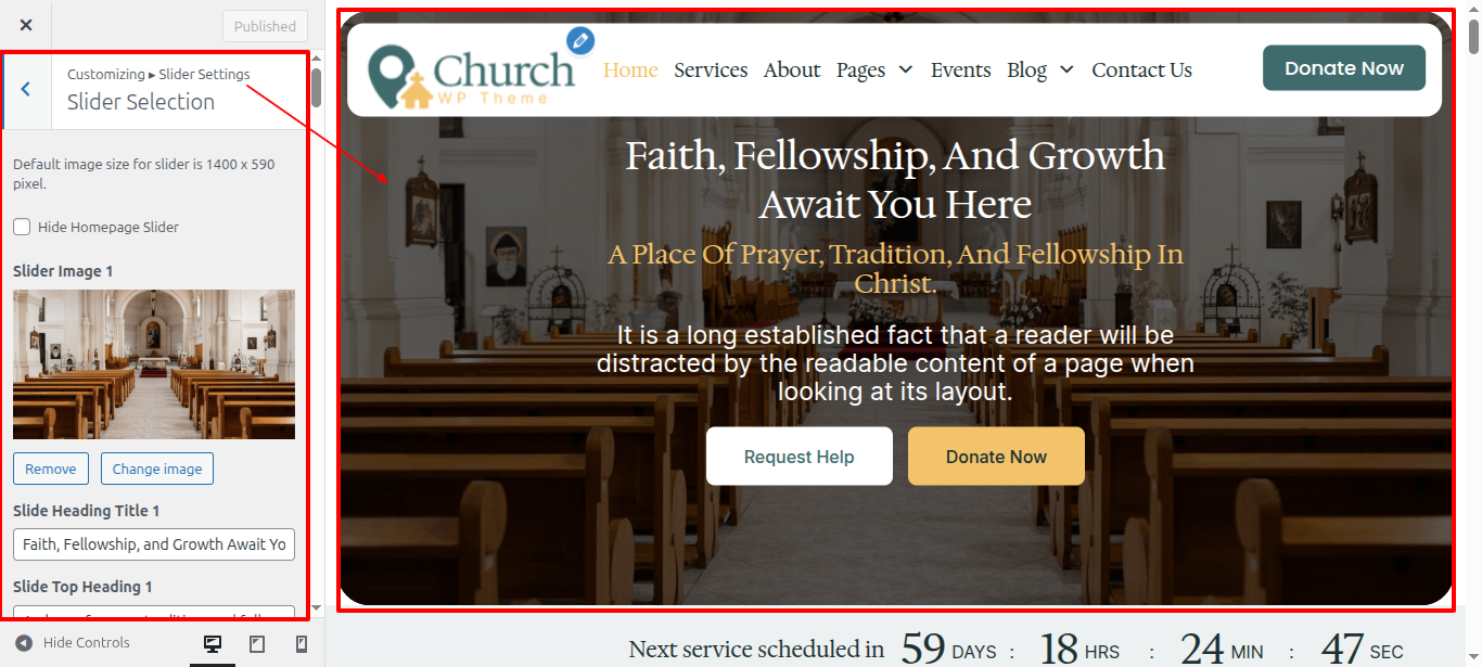 - Access the WordPress admin panel and go to Appearance > Customize > Slider Section > Slider Image Selection.