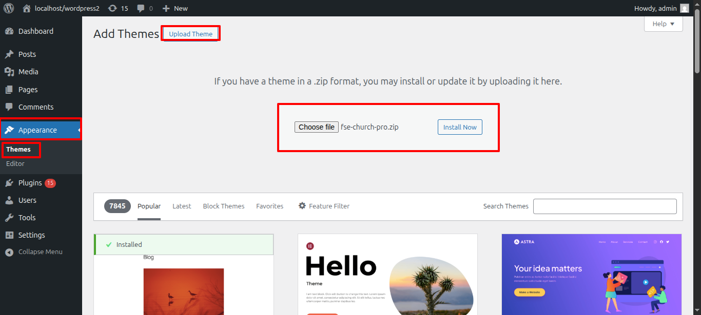 fse-church.zip file by extracting the file that you just downloaded After unzipping it, upload it the file that was extracted file towards