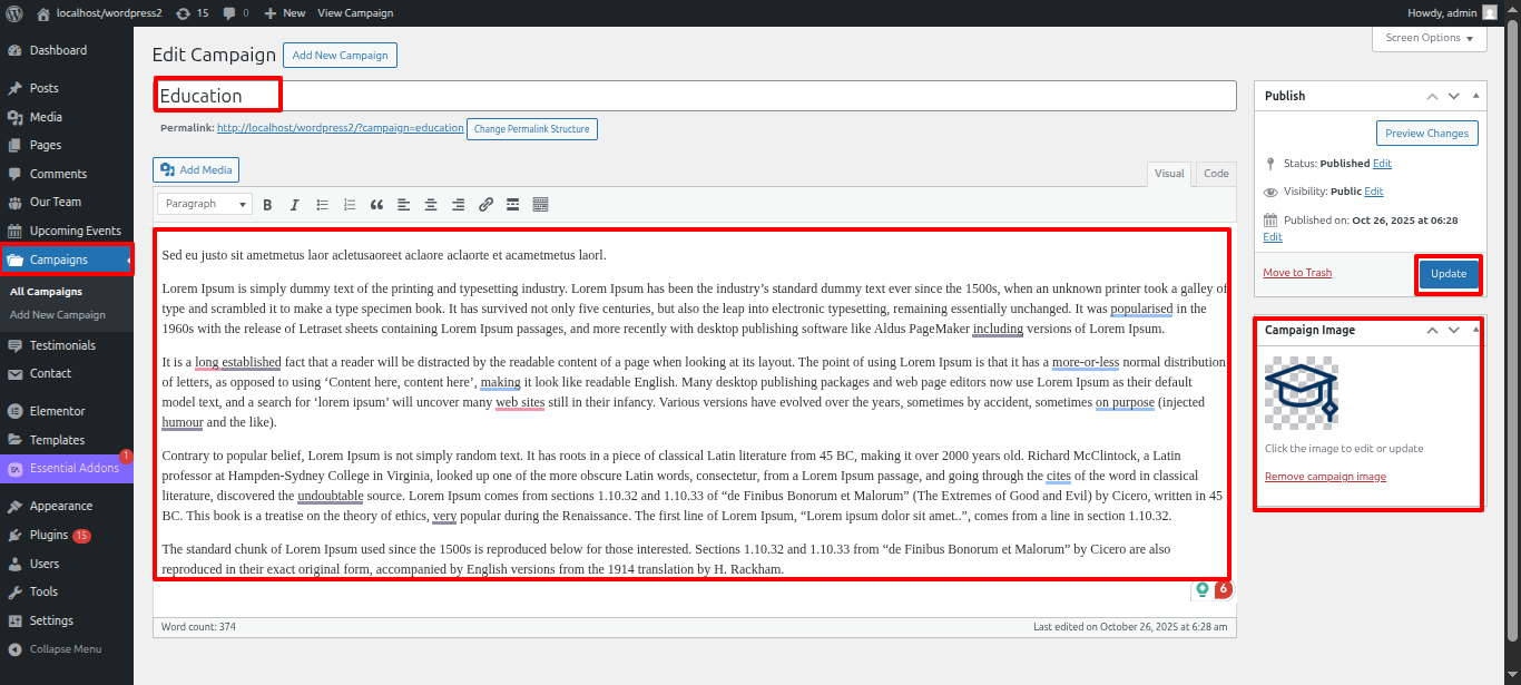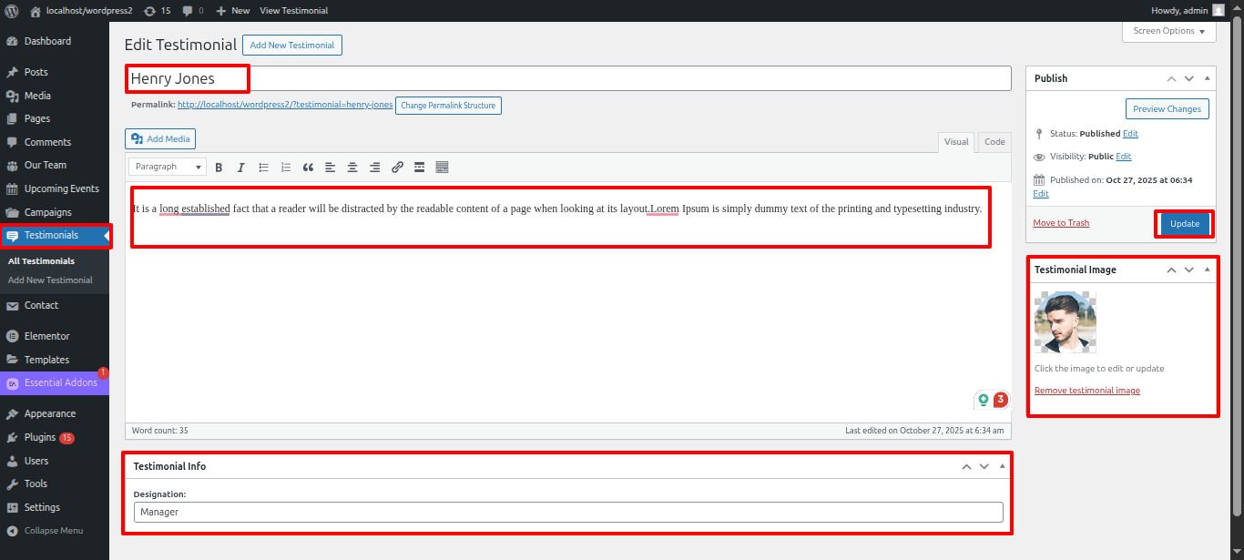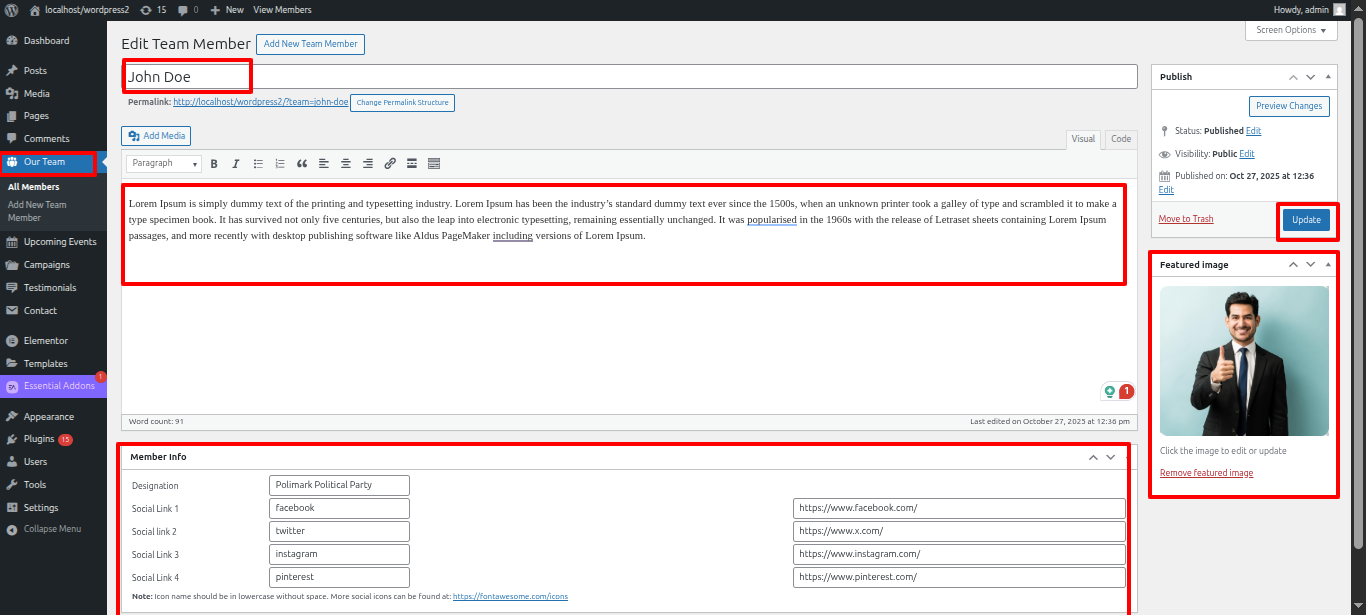 - Navigate to Our Team > Add New in The admin panel on WordPress.