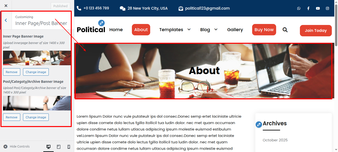 To update This banner imagery for inner pages or single blog posts, follow these steps: