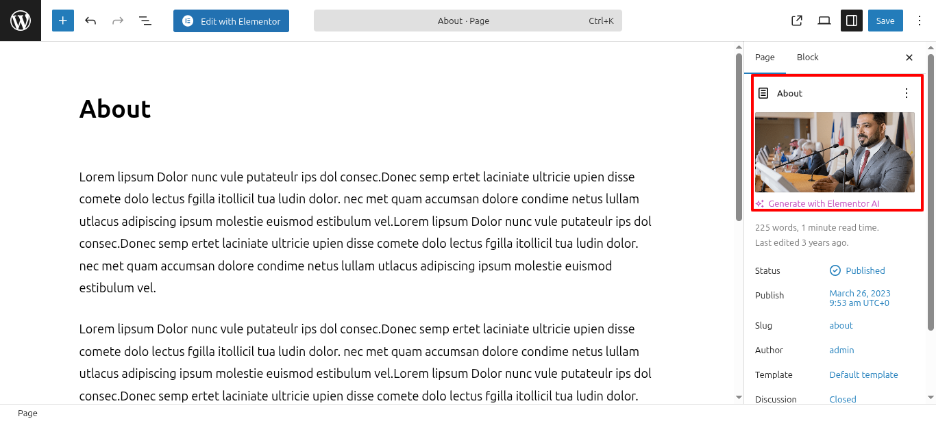 Where you can generate a recent page from Pages > Press Add New, A 'Default Template' is automatically applied to the page. The default template offers a basic page layout, with options for a sidebar or a full-width content area.