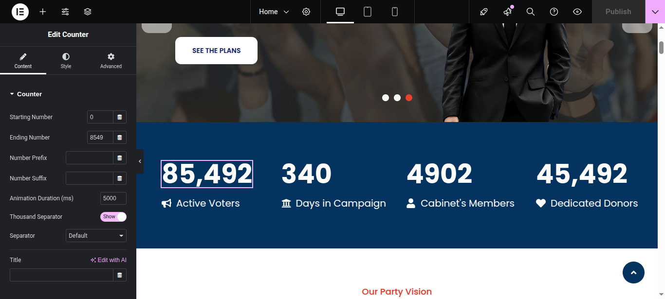 Once the Exporting Demo has been imported, you can customize the Mainpage Section using the Elementor page builder.
