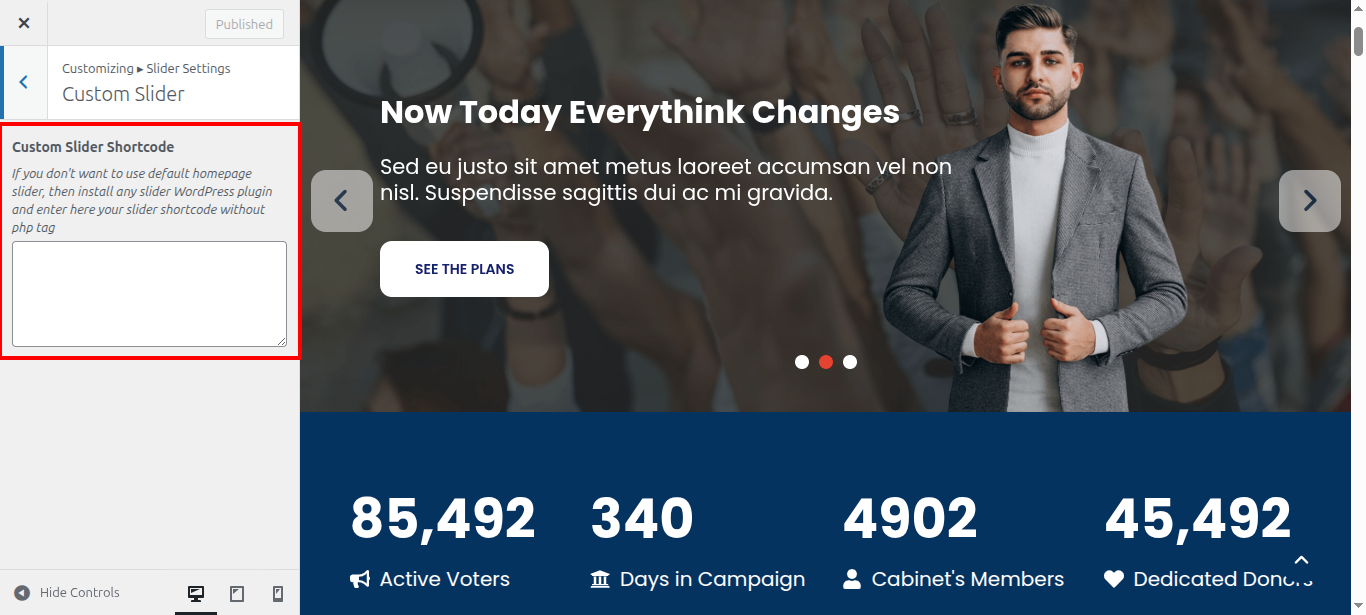 - Choose on to Appearance >than Customize > Explore Slider Section > Lastly Custom Slider.