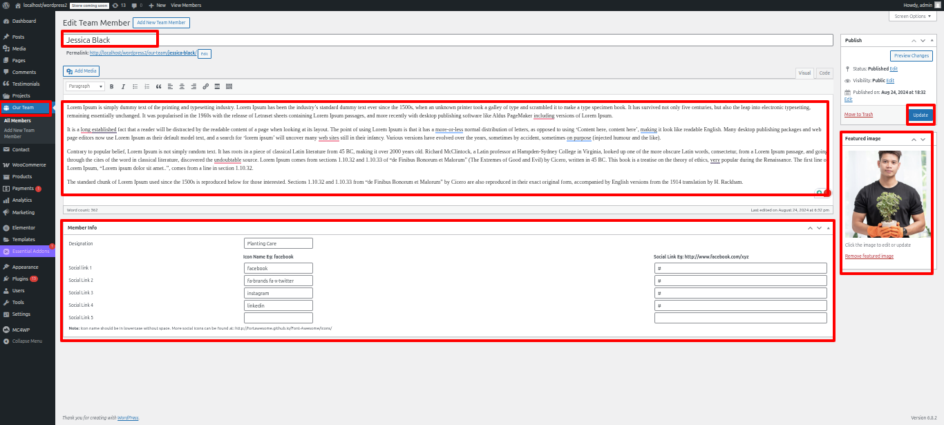 - Navigate to Our Team > Add New in The admin panel on WordPress.