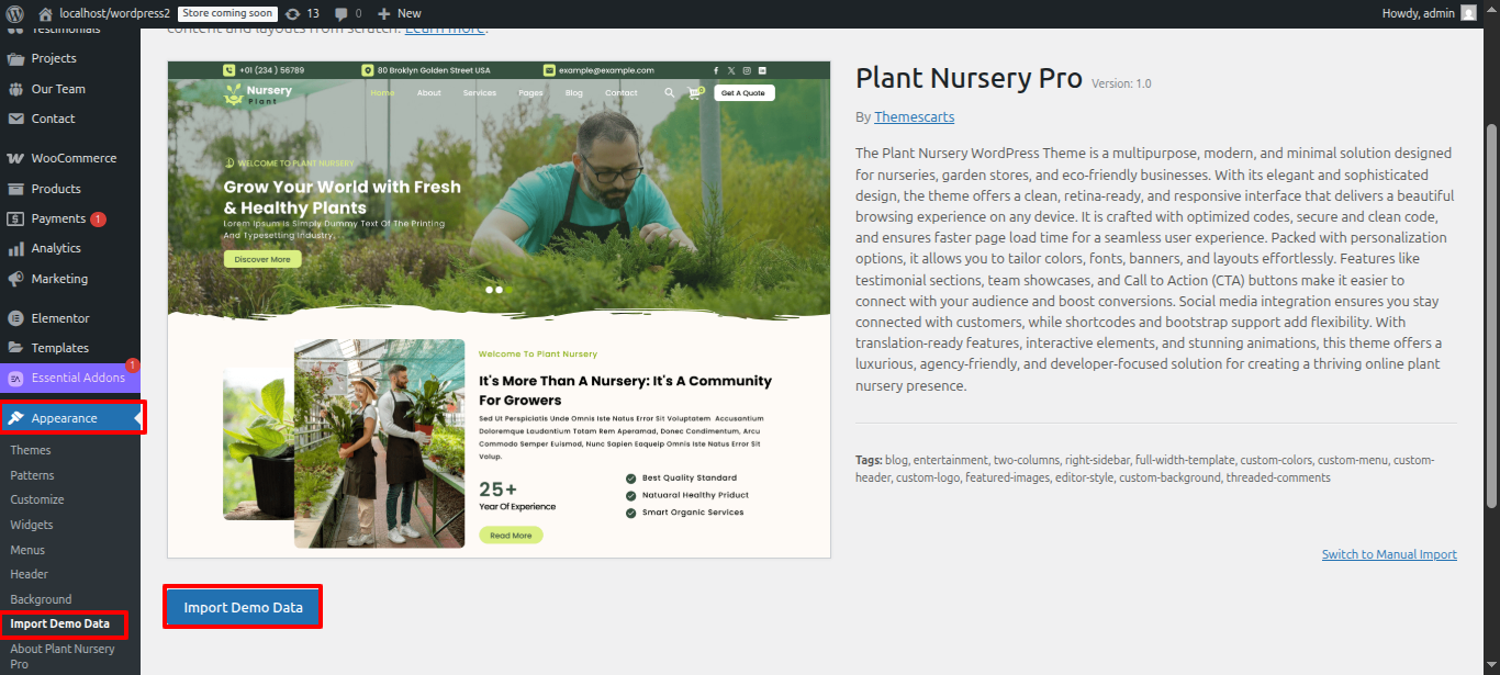We appreciate you selecting Plant Nursery! The goal of this tutorial is to take you step-by-step through the complete theme for WordPress setup and customization process. It addresses a number of topics to make getting started simple. Kindly check out our Contact Area for help whether you're facing any inquiries that aren't covered in this article. Thank you for your support!