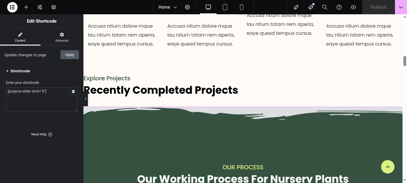 The Elementor plugin is used to create the Mainpage Section. Make sure you have installed the Elementor plugin.