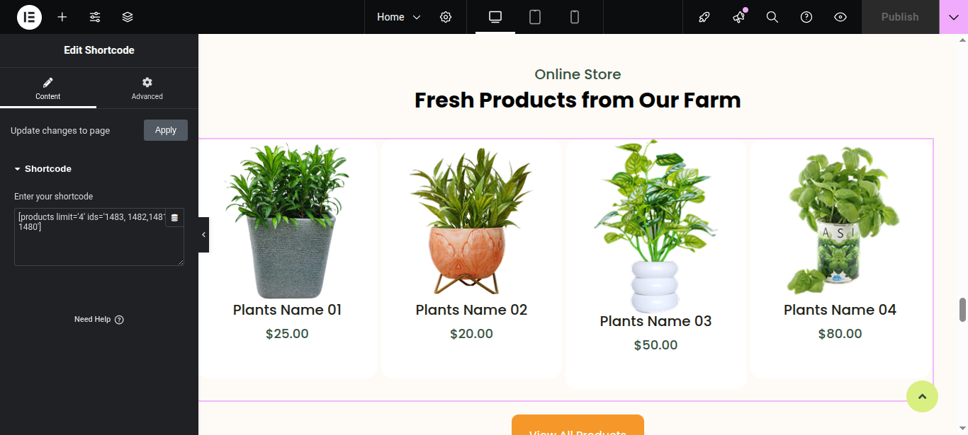 To display WooCommerce products in this section: