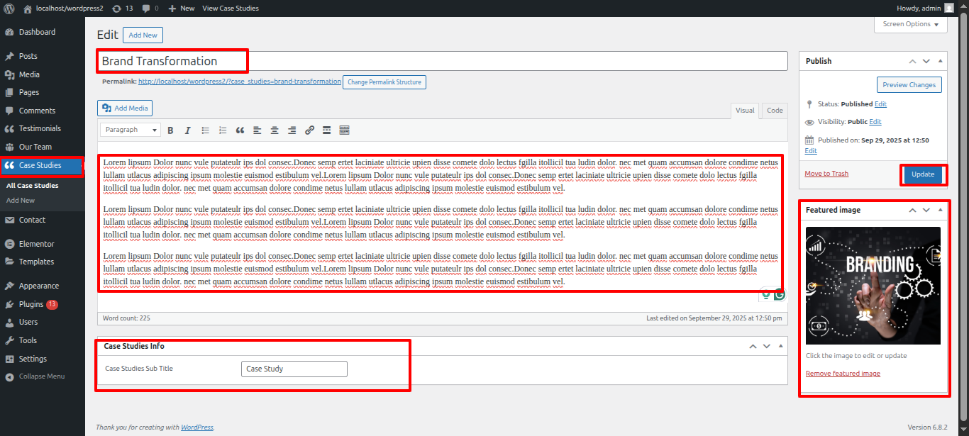 - Create new posts from Case Studies » Add New
