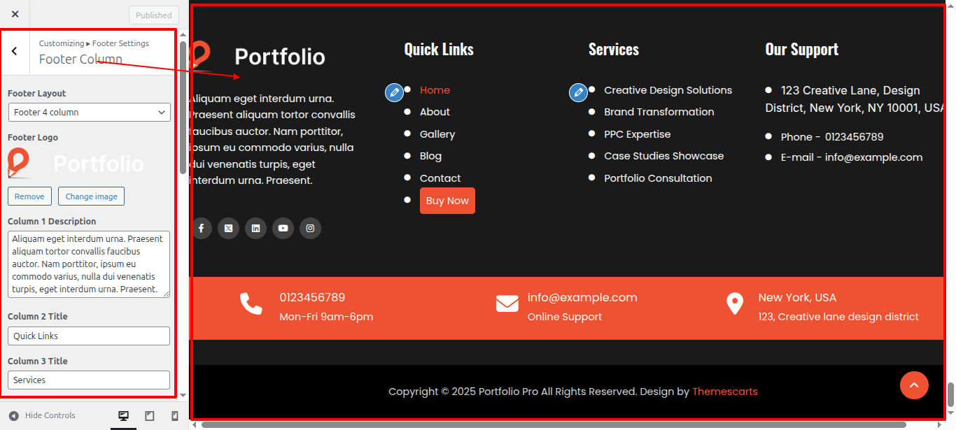 - Choose on Appearance > than Customize >. Explore Footer Settings > Lastly, Footer Column.
