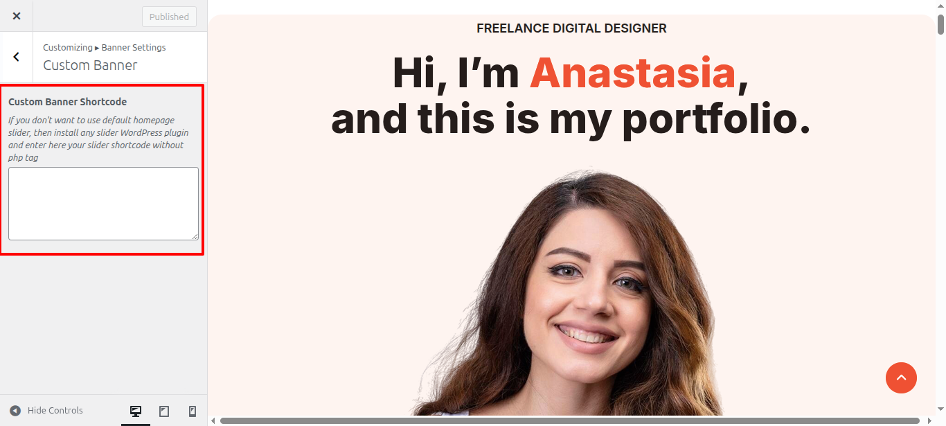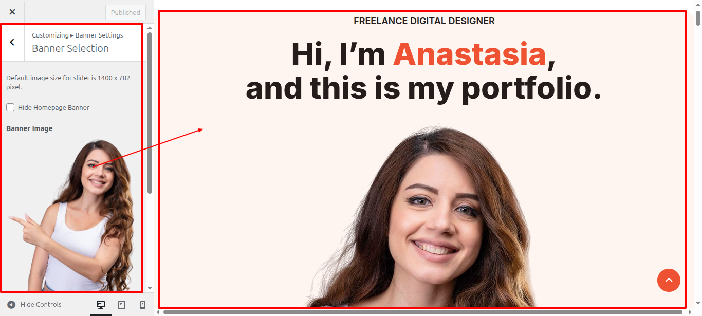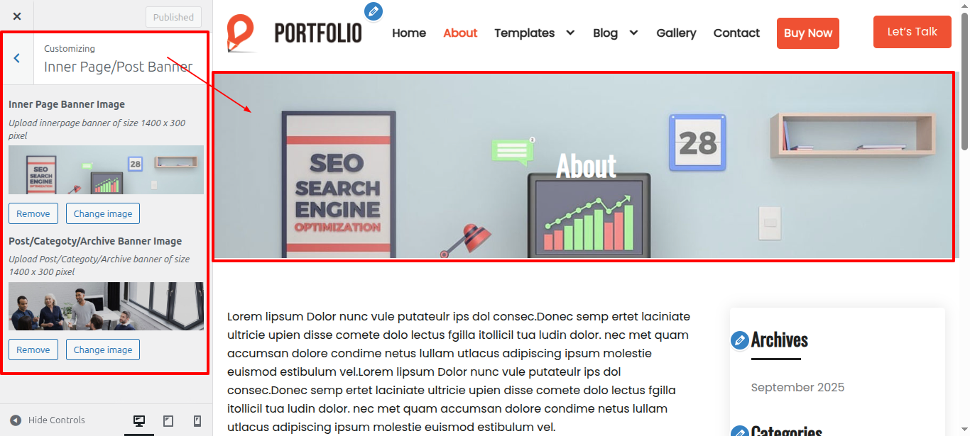 - Access the WordPress admin panel and go to Appearance > Customize > Banner Section > Banner Image Selection.