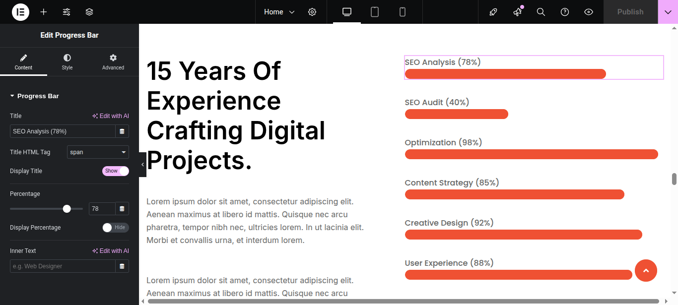 Once the Exporting Demo has been imported, you can customize the Mainpage Section using the Elementor page builder.