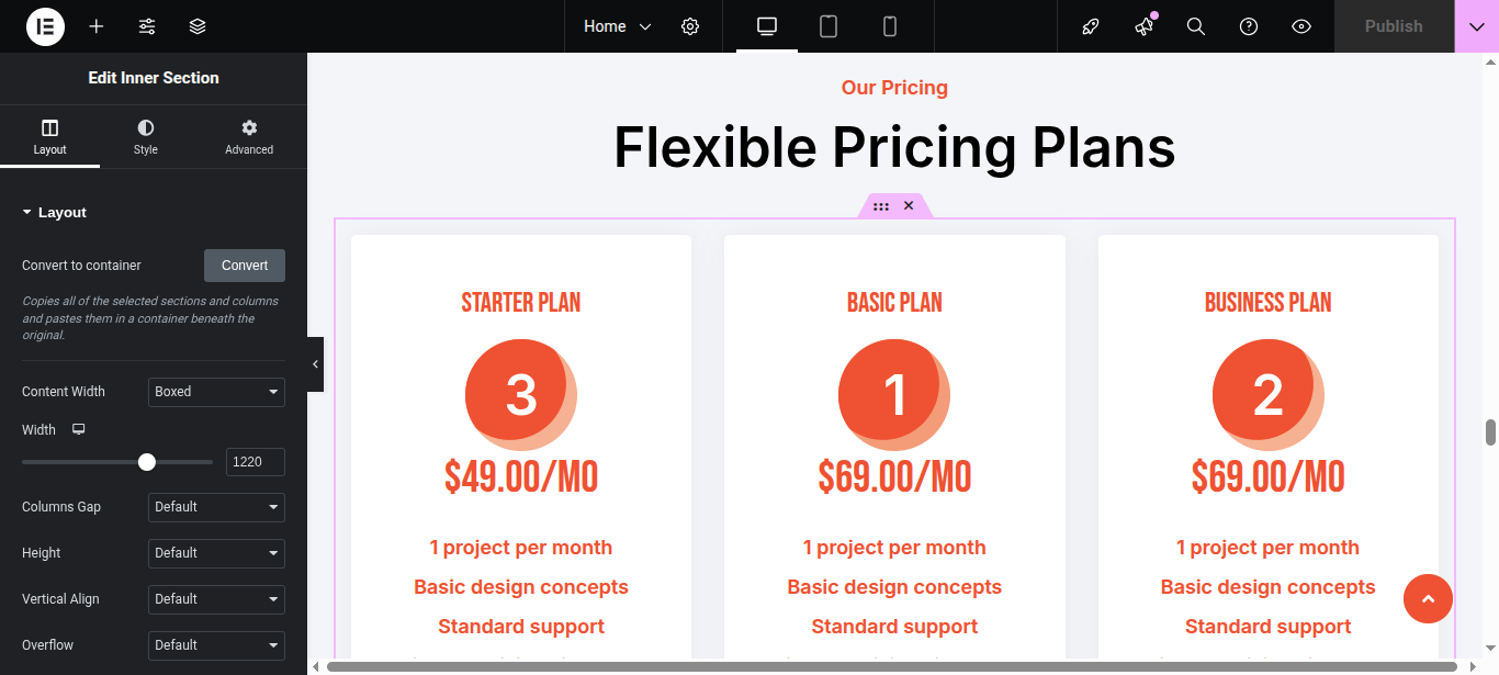 - Click Publish to apply the changes.